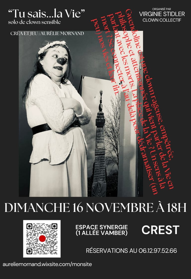 Gwendoline est une clowne rageuse, empêtrée, philosophe et attentionnée qui vient parler de la Vie en parlant avec les morts. La place de la Vie ? Un sens à la mort ? Se connecter à l'au-delà pour dédramatiser (un peu) nos vies et leur fin. Un spectacle qui prend le contre-pied de certaines considérations toutes faites et qui parle aussi du doute, de la vulnérabilité, des limites de chacun et de Patrick Hernandez. Ou comment composer avec la vie telle qu'elle est...