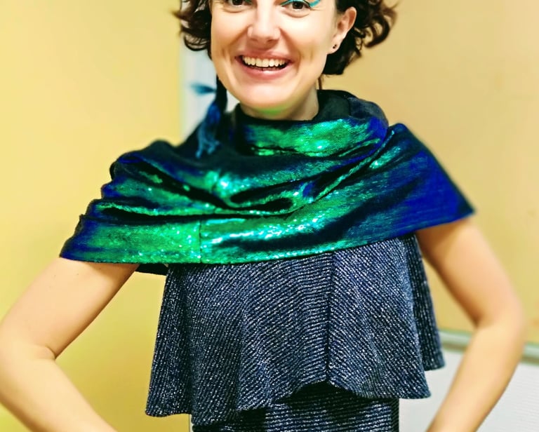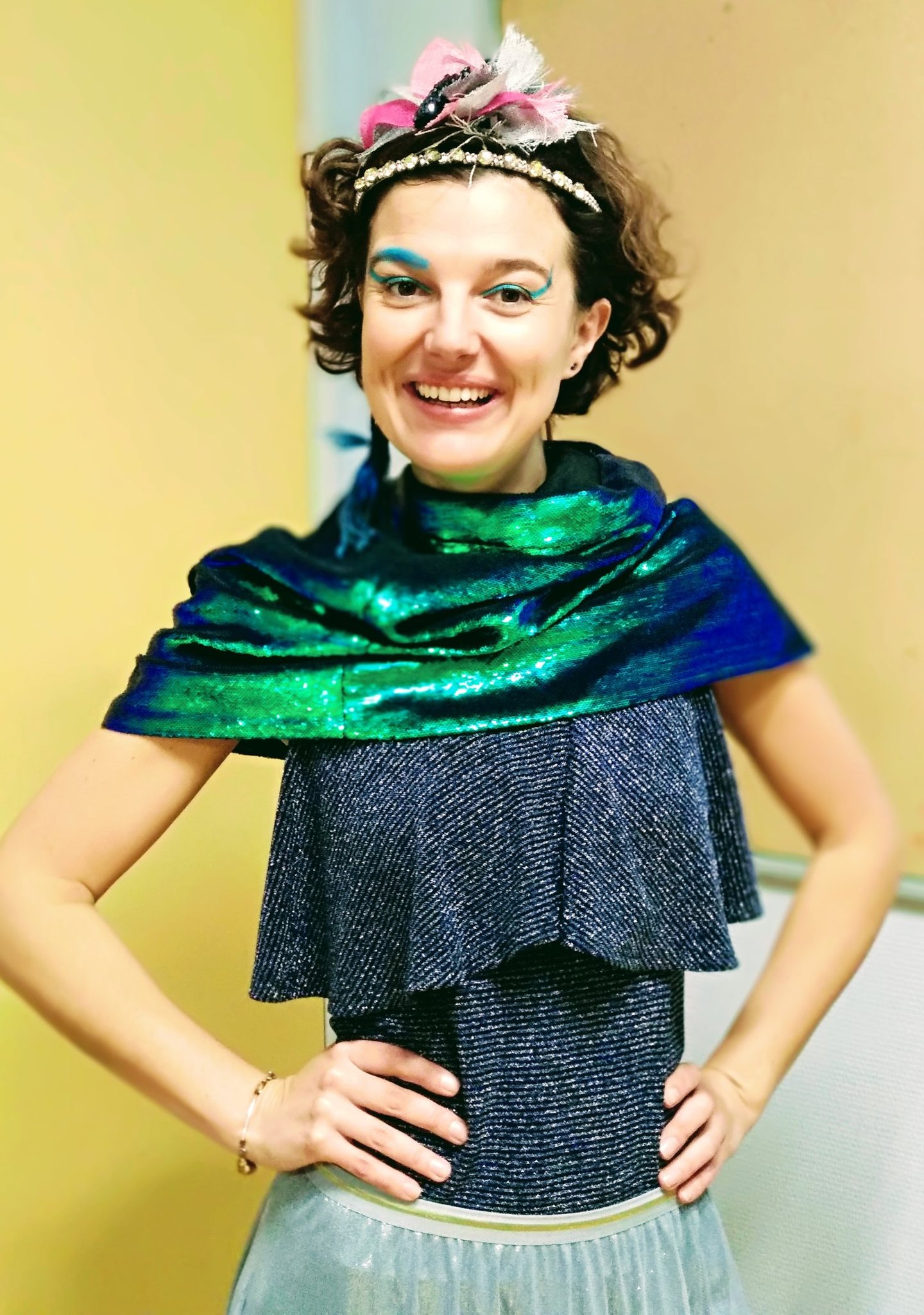 J’ai été recrutée en 2015 aux Clowns de l’espoir, association de clowns hospitaliers auprès d’enfants hospitalisés, je suis Marchande de sable le soir !