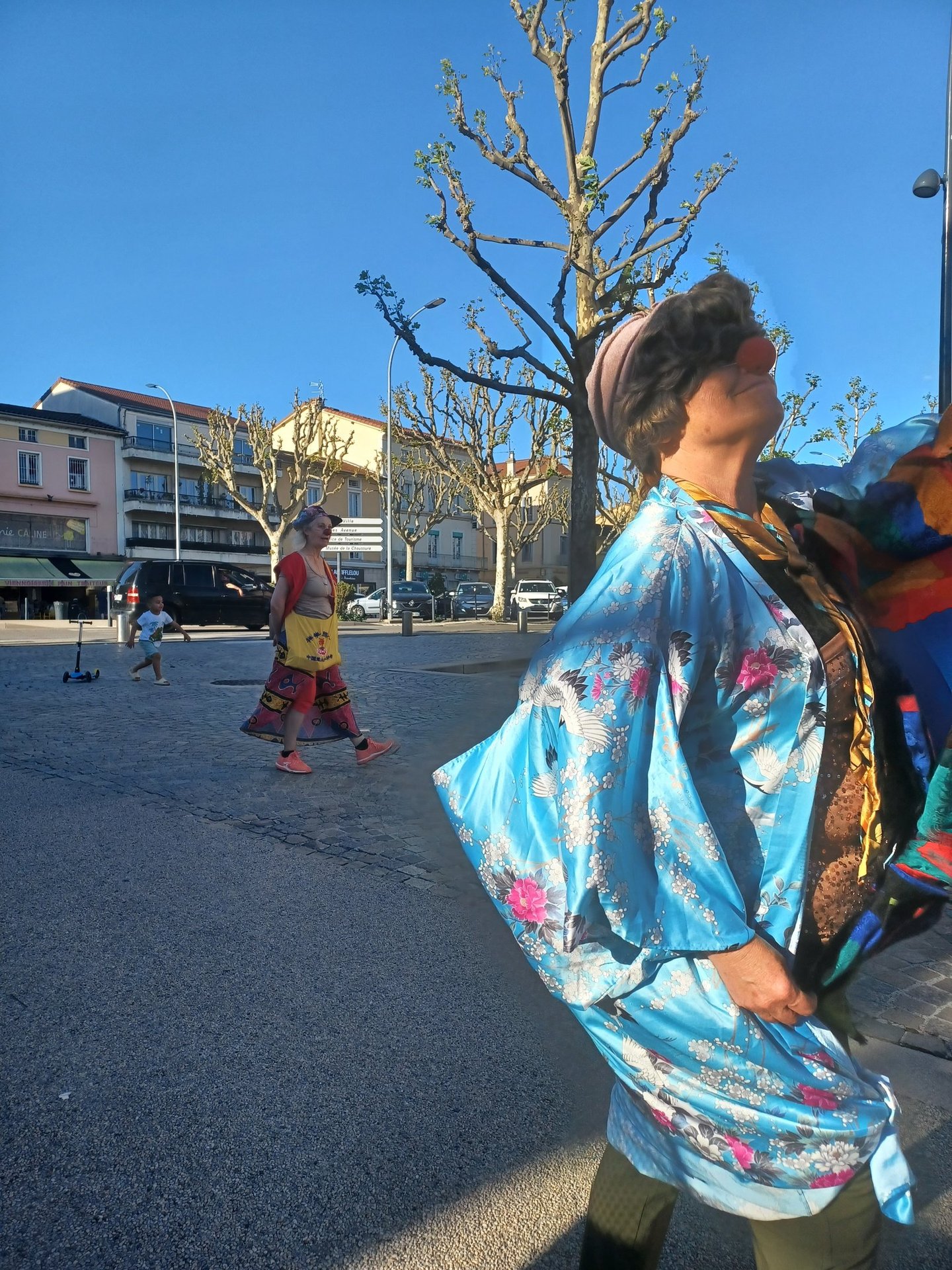 Une plongée dans la relation vivante avec le monde : passants, lieux publics, aléas et imprévus deviennent partenaires de jeu. Avec tout ce que les stages précédents ont renforcé comme confiance, autonomie, conscience du rythme et respect de l’autre, les clown-es osent une présence nue, libre, au final unique et poétique.